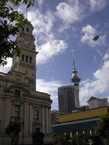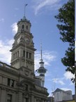 | Auckland Town Hall aan de Queen Street met op de achtergrond de Auckland Sky tower. Viewed: 42 times.